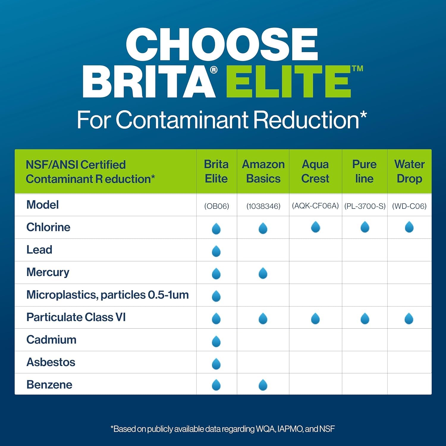 - The Brita Elite lasts 3x longer than Pur filters and 6x longer than standard ZeroWater filters; only replace the Brita Elite water filter 2x a year, about 6 months