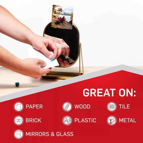 - Versatile: Sticks to paper, wood, tile, linoleum, cinderblock, brick, metal, plastic, mirrors, and glass