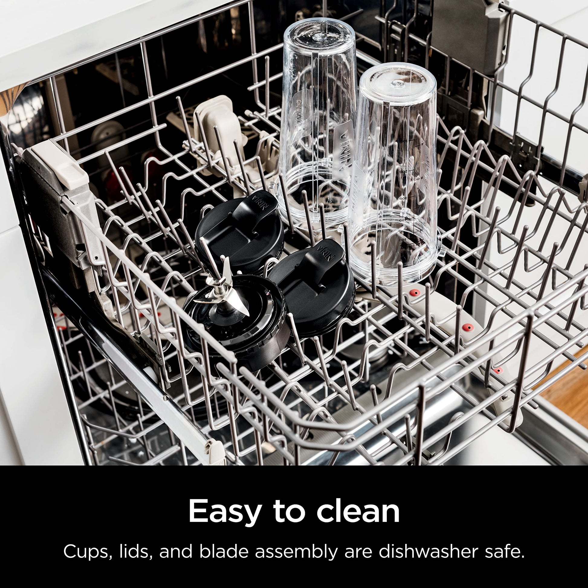 - DISHWASHER SAFE PARTS: Cups, lids, and blade assembly are dishwasher safe.
