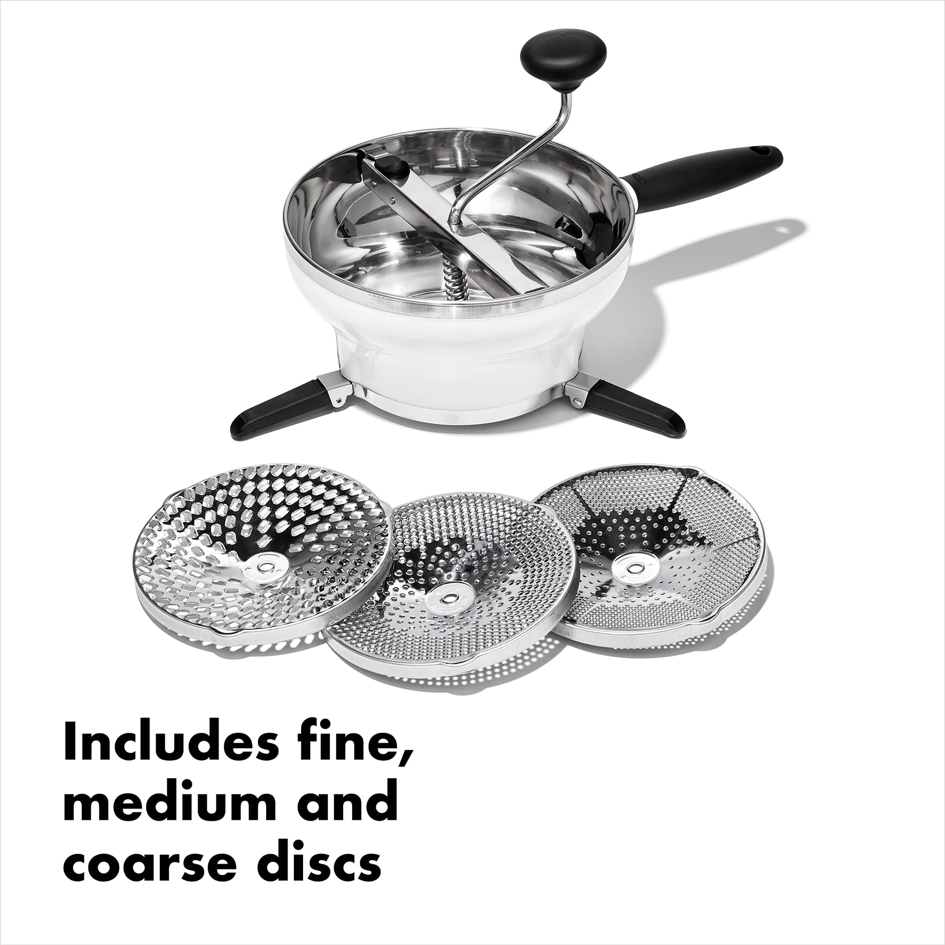 - 3 non-slip legs hold the food mill securely over bowls and pots up to 11 inches in diameter, keeping it out of your food